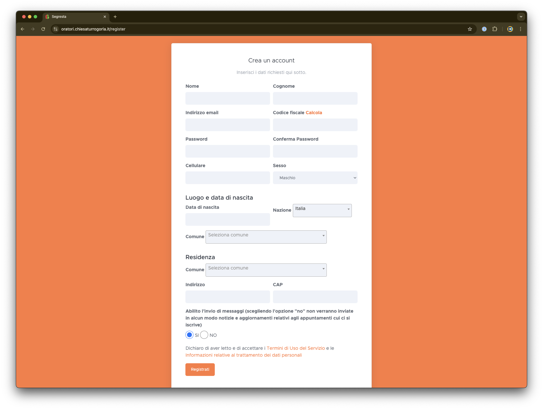CREA IL TUO ACCOUNT SU SEGRESTA